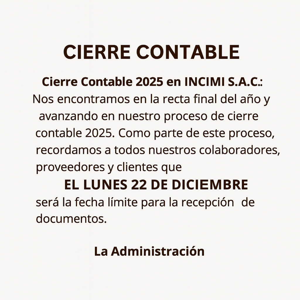 En INCIMI SAC valoramos cada oportunidad de colaborar contigo. ¿Tienes preguntas, ideas o necesitas asesoramiento? Estamos aquí para ayudarte.